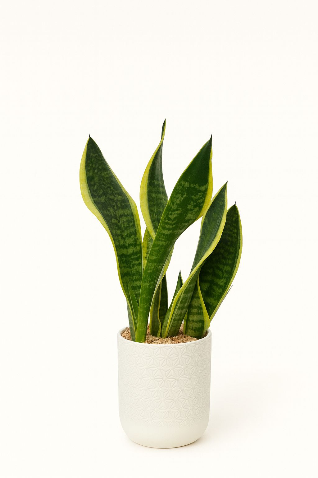 סט עיצובי מוקפד הכולל סנסיווריה חיה אחד הצמחים החזקים והעמידים בעולם, שתול בעציץ פרימיום בעל טקסטורה ייחודית ועדינה.