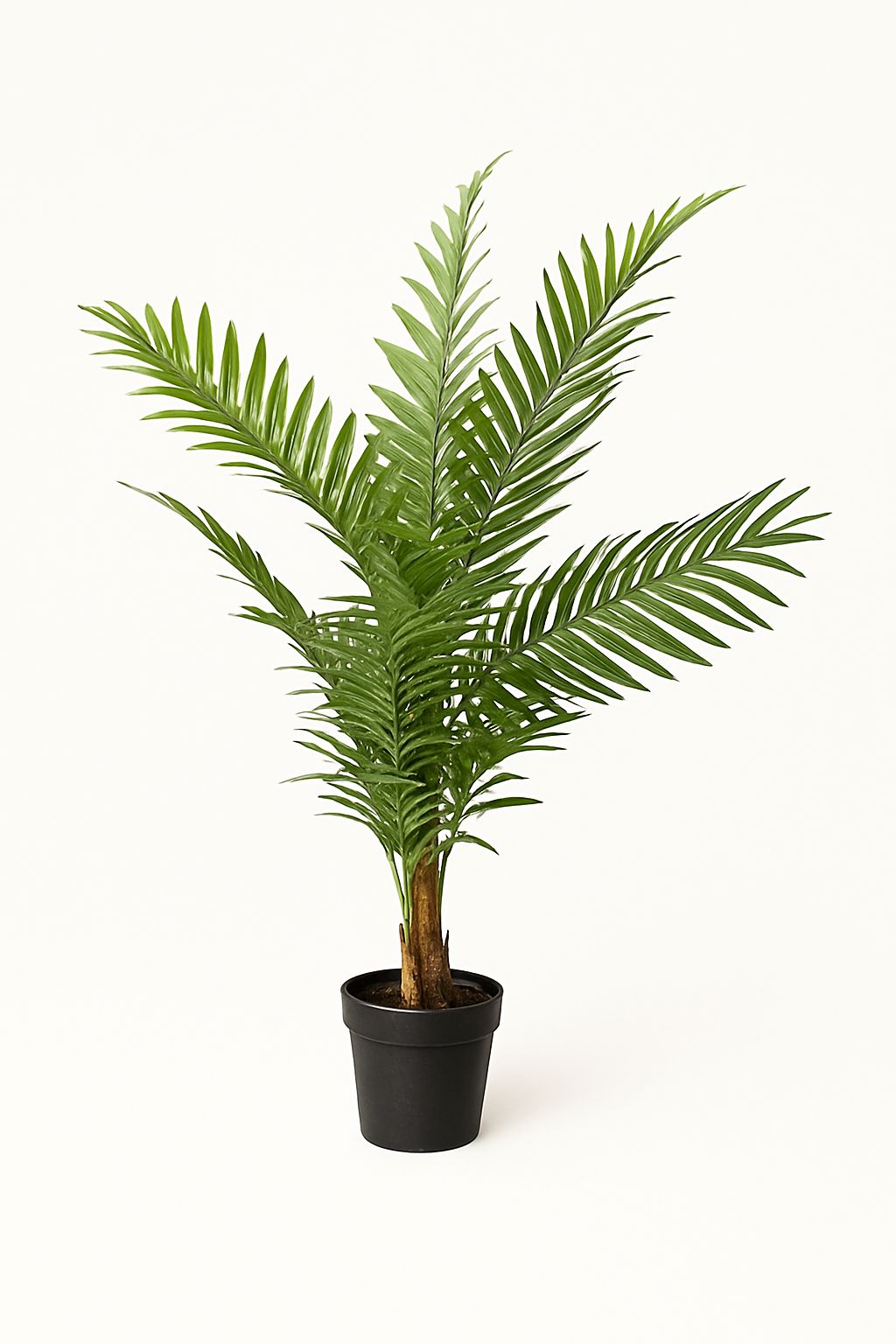 עץ דקל מלאכותי איכותי בעל מראה טבעי ומדויק, עם עלווה עשירה וטקסטורה שמדמה צמח חי בצורה מושלמת.